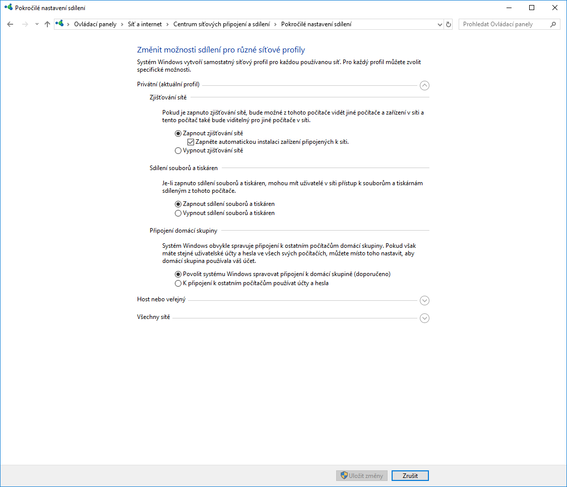 Takhle mam ted nastavene "Nastaveni sdileni":