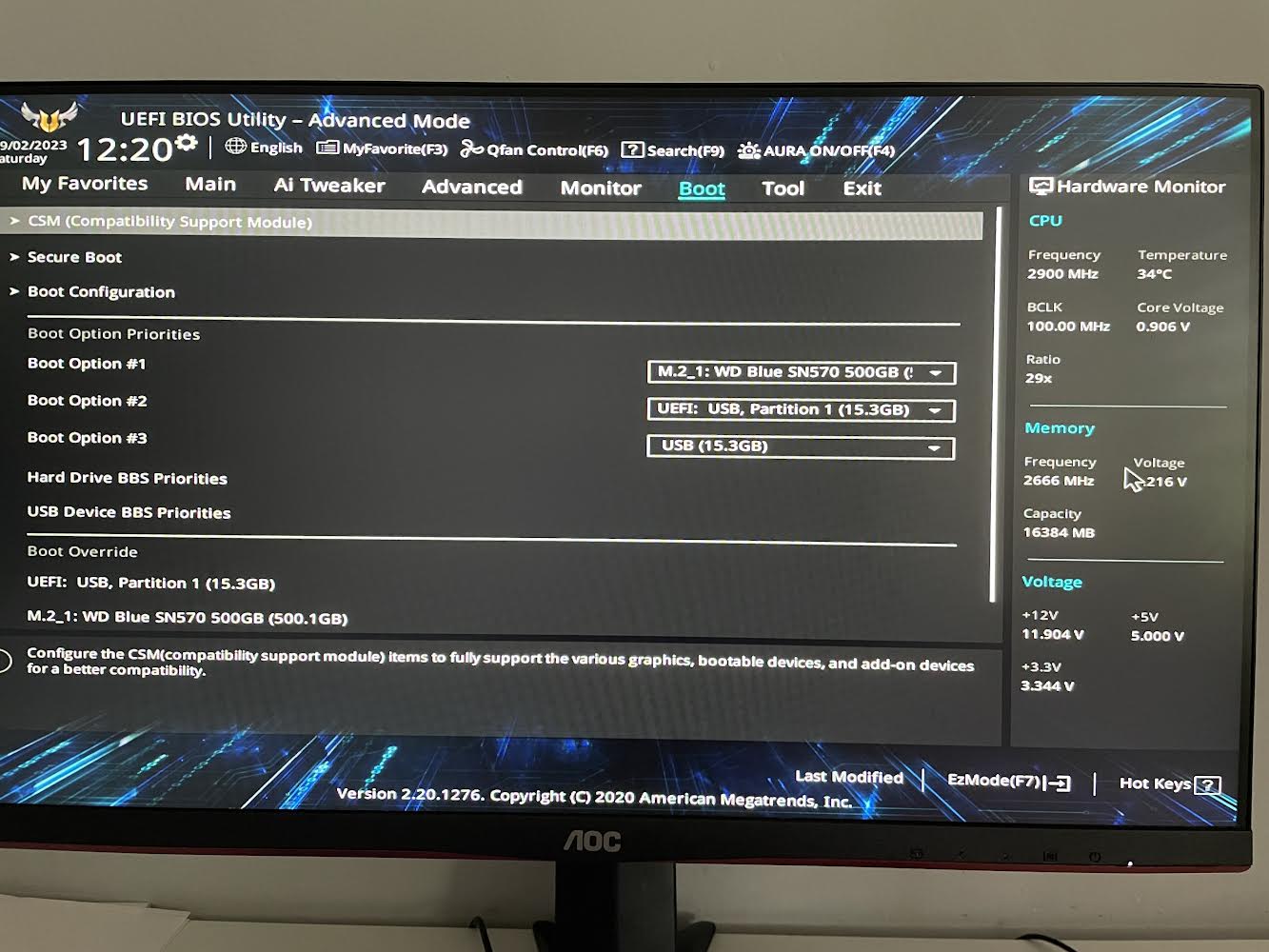 V EZ mode v BIOSu (klávesa F7) zmáčkni klávesu F8, nebo při startu PC mačkej klávesu F8. Objeví se ti zařízení, ze kterých můžeš nabootovat. Musí tam být ta instalační fleška v UEFI režimu. Tzn. naformátovaná na FAT32...CSM dej na Disabled. Zapni firmware TPM v CPU, zapni a aktivuj Secure Boot. Ze všeho nejdříve ale naflešuj nejnovější BIOS. Máš jej 3 roky starý: