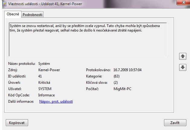 včera se mi samovolně restartoval během startu Win PC, nenabootoval ani na úvodní stránku "Vítejte". V Prohlížeči událostí je chyba popsána následovně - viz. příloha. Netušíte čím to může být?