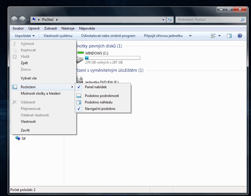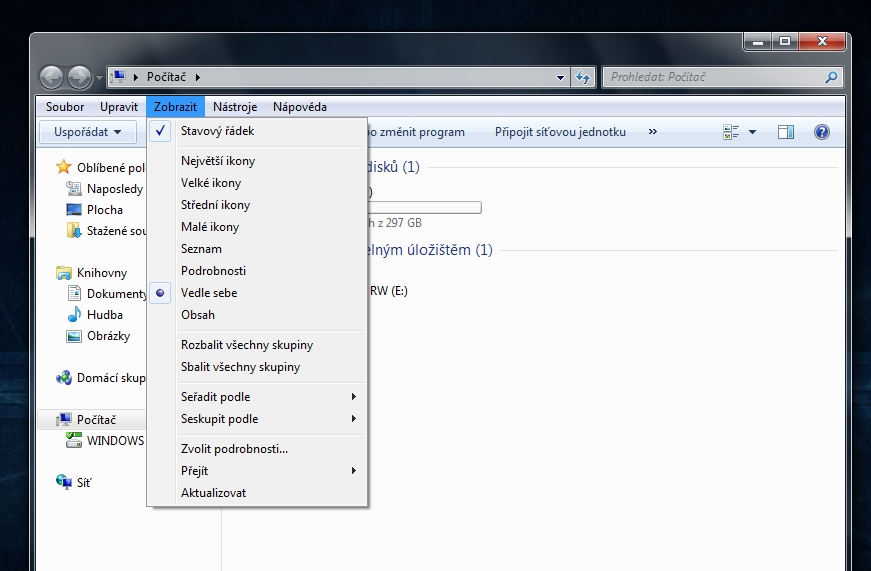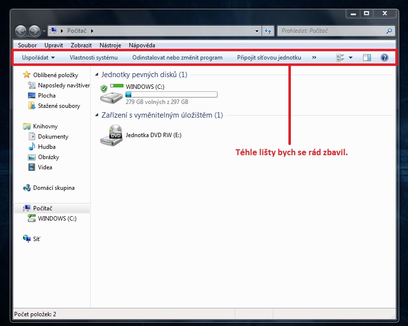 Lišta v průzkumníku: Jak se jí zbavit ? (WIN 7)