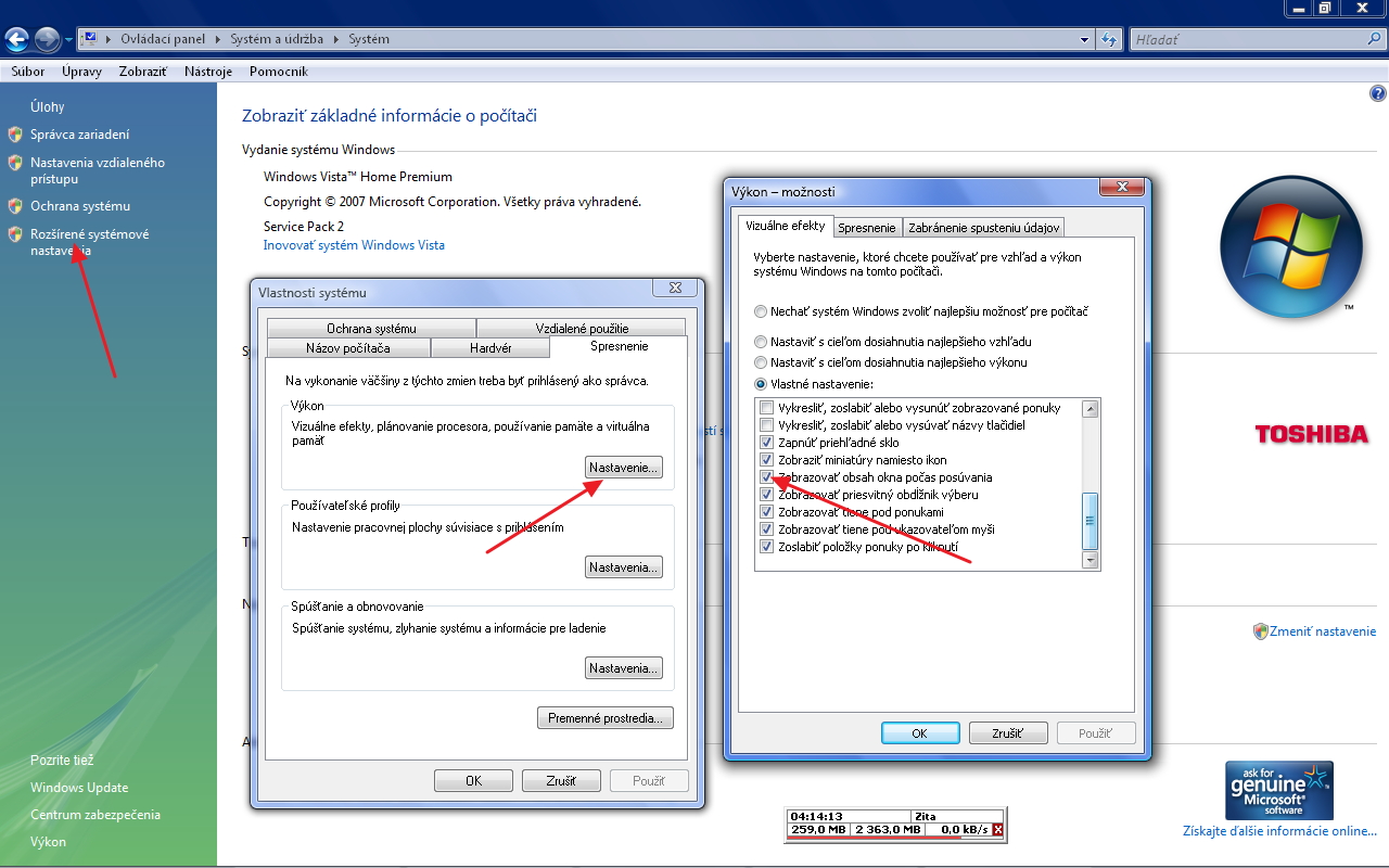 Upřesnit nastavení systému -> výkon -> Při přetahování zobrazit obsah okna. Tohle?