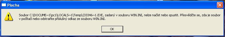 Ve win.ini to zjevne nemas, vyhledej a smaz retezec {33346~1.exe v Editoru registru, tam jsou klice s podobnym vyznamem jako [Load] sekce win.ini