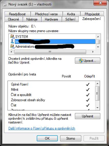A ještě jedna možnost – ve vlastnostech dokumentů změnit cíl. Každému jako dokumenty přidělit jeden disk a na druhý disk uplatnit přes vlastnosti/zabezpečení příslušná přístupová práva.