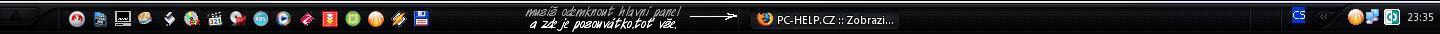Odemkni hlavní panel a objeví se ti posouvátko,to dej co nejblíže k ikonkám co jsou v levo na liště a pak se titam vejde těch informačních panýlků otevřených programů trochu víc a nemusíš zvětšovat lištu jako ti poradil kolega .panel opět můžeš zamknout.