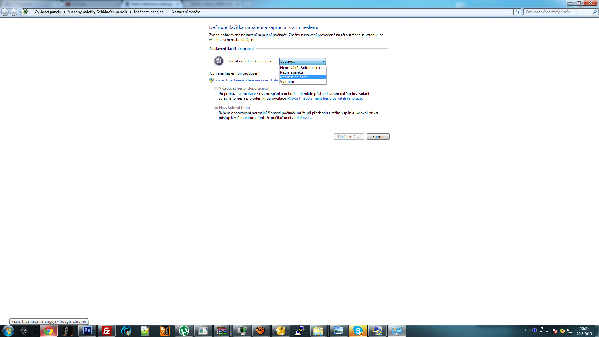 Pokud bys chtěl přímo hibernaci, musíš nejprve v pokročilém nastavení napájení zakázat hybridní režim spánku.