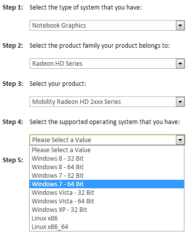Tady doporučují stáhnou ovladač na Vista pro Ati HD2xxx a následně pomocí kompatibility módu jej nainstalovat.
