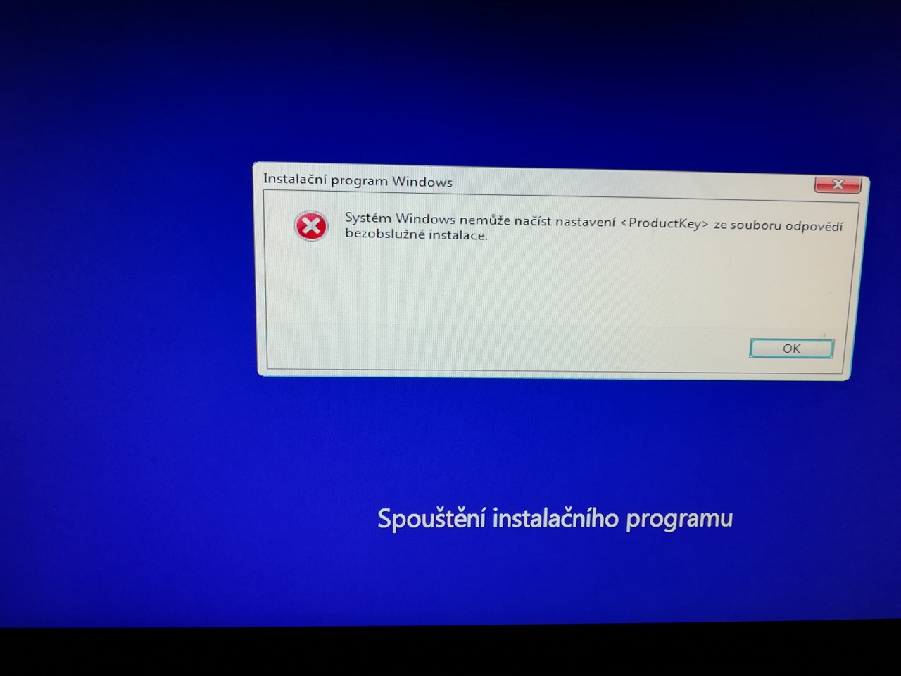 malej pokrok nadešel, povedlo se vytvořit bootovací usb přes media creation tool, po nabootování, hláška stejná...