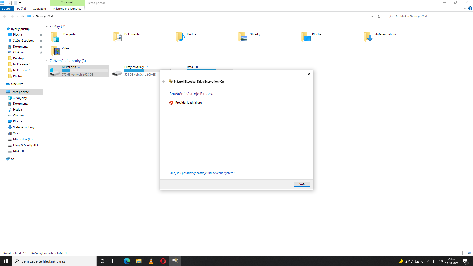 když si otevřeš bitlocker, u systémového jeho aktivace chybí, nebo je zšedlá, nejde spustit?