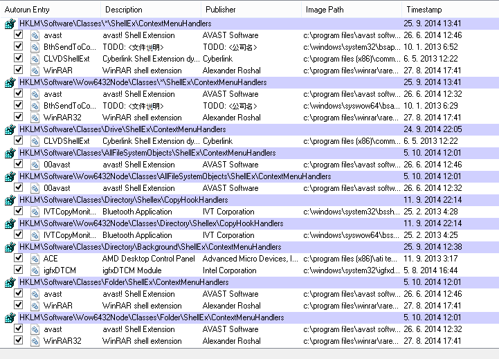 Nějak se v to ale nevyznám, připadá mi, že rozšíření shellu je v záložce Explorer úplně všechno, protože i když to přímo nemá v názvu extension, tak je to v podsložce ShellEx. Mám označit všechno?
