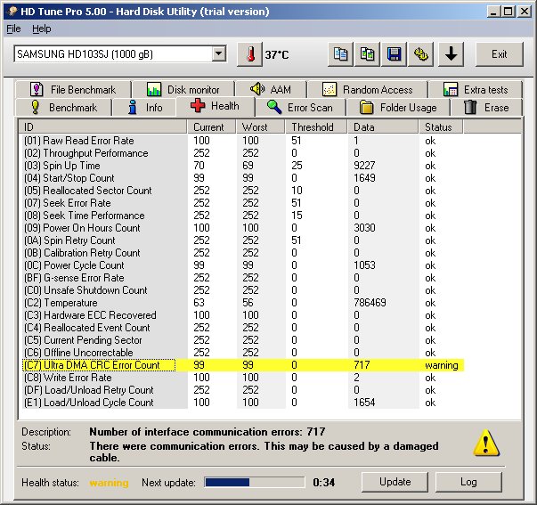 Na tu hodnotu CRC se podívám. Ale v servisu mi řikali, že muj disk dali do jinýho PC. Takže změnu neočekávám.