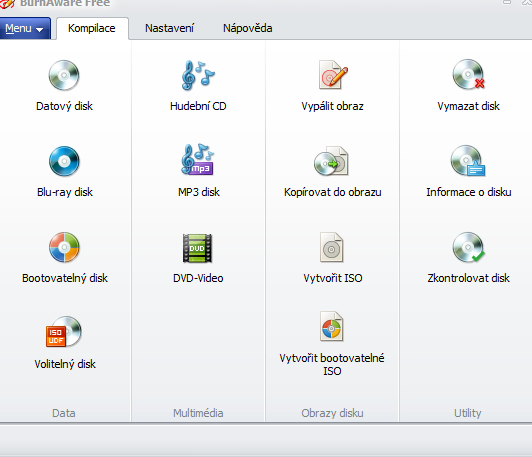 V BurnAware free je pouze jedna volba-(obraz disku).Tak ho vyzkoušej. Tady si nejsem jistej ,ale řekl bych datový obraz CD/DVD