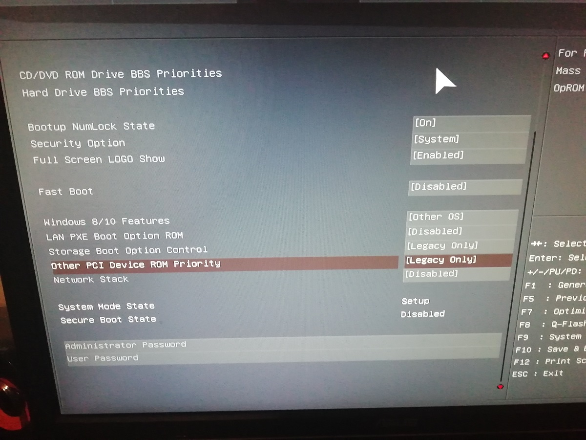 Ak zmeníš aj Other PCI Device ROM Priority.To boot menu funguje ?Veď daj sem screen z úvodnej stánky v biose.
