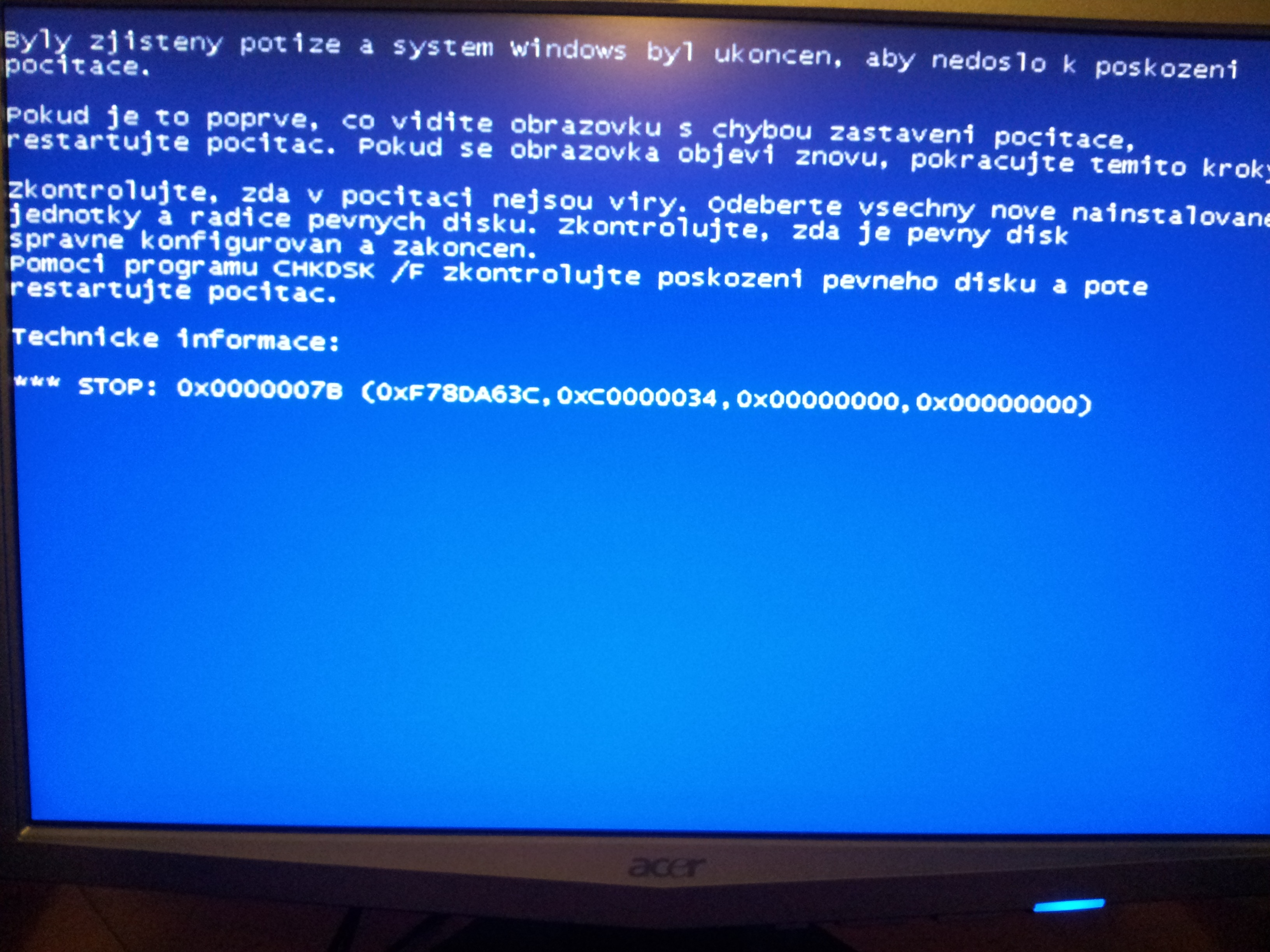 Ovšem po chvíli se objeví tato modrá obrazovka a je konec.