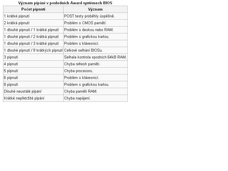 Mám tu menší problém. Když jsem dnes ráno zapnul PC začalo mi to pípat bylo to myslím krátké,nebo dlouhé neudržitelné pípání.