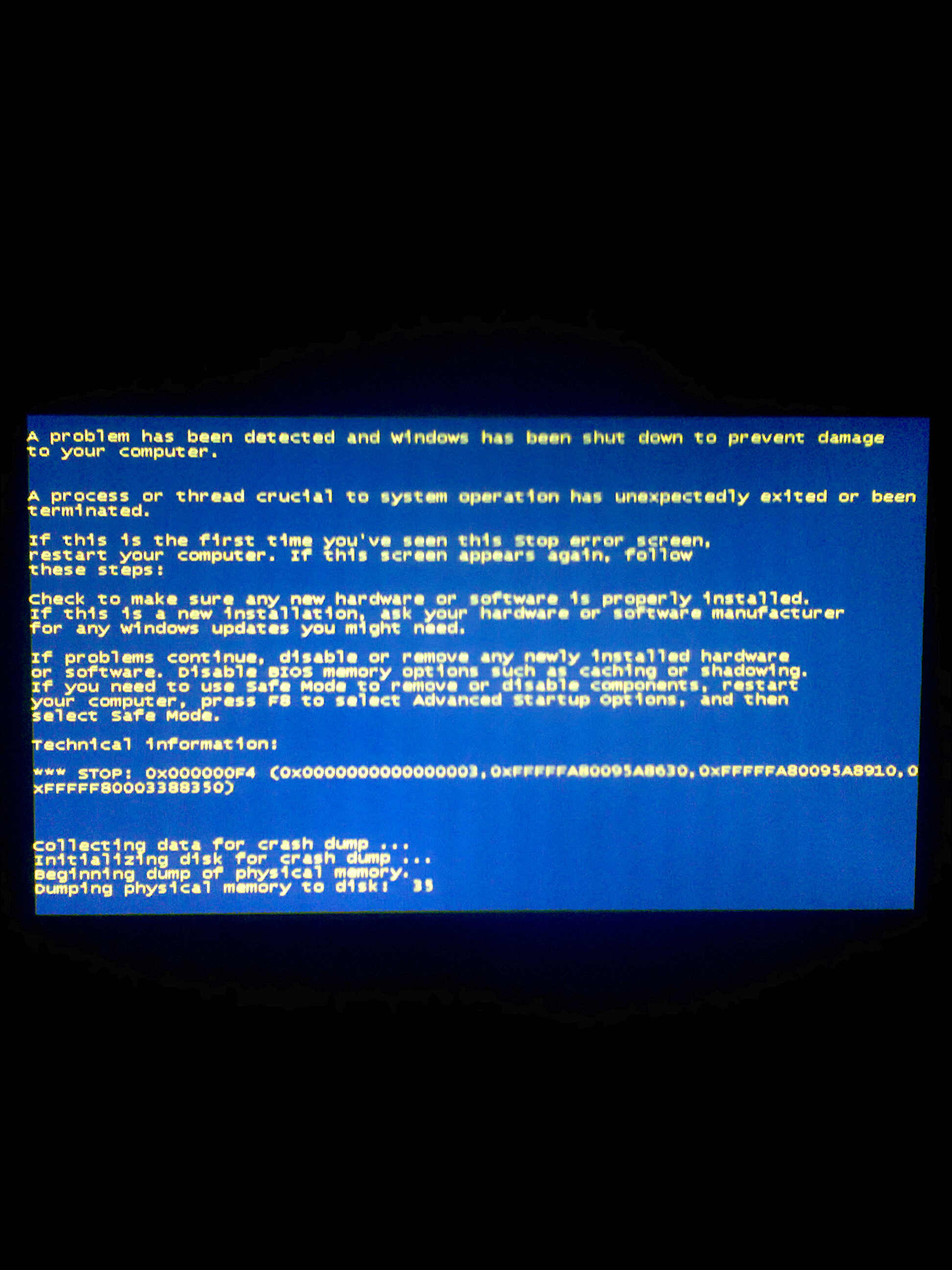 Ahoj, k pádu dojde kvůli tomu, že je ukončen nějaký proces update.exe, který bude pravděpodobně běžet jako služba, nastavená jako "pro systém kritická"