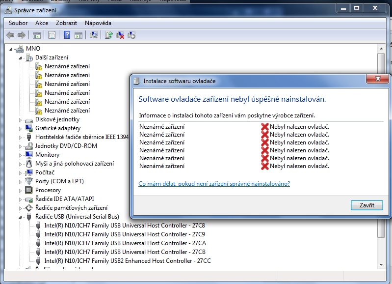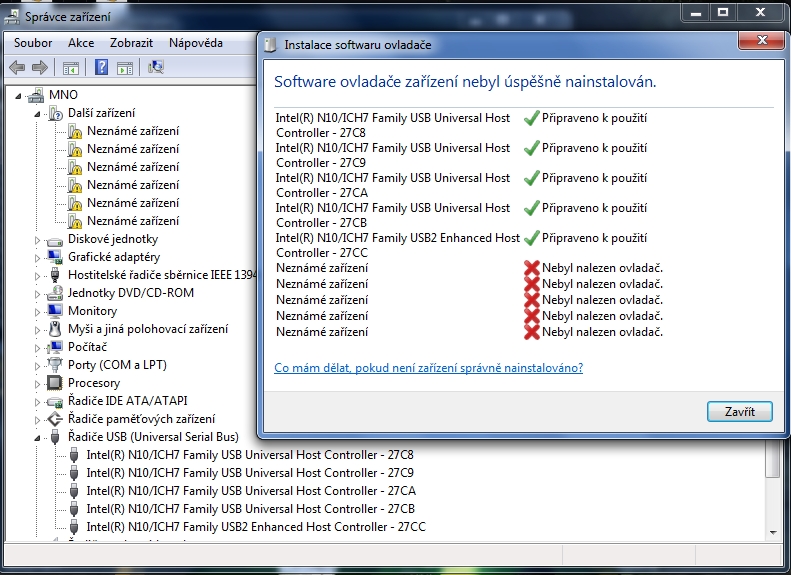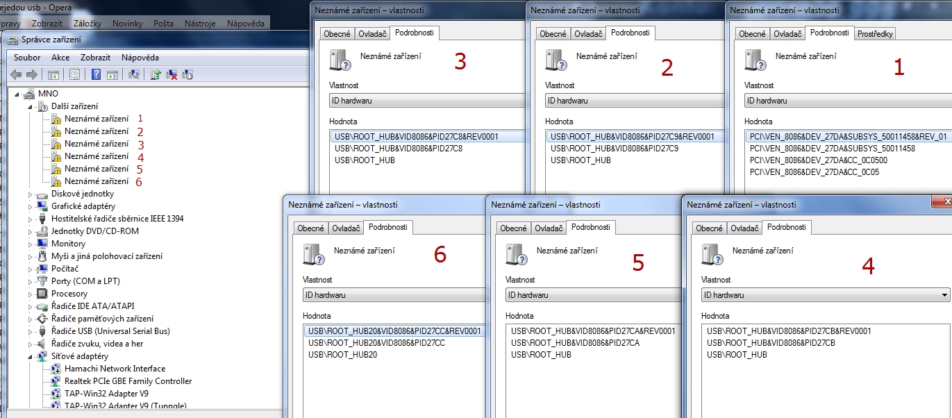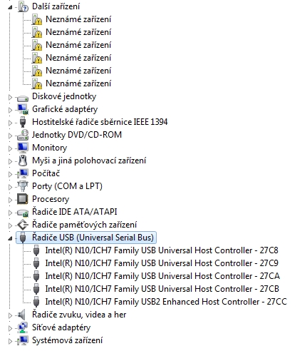No chybí ti tam zařízení kořenových rozbočovačů. Zkopíruj sem ID hardwaru všech neznámých zařízení.