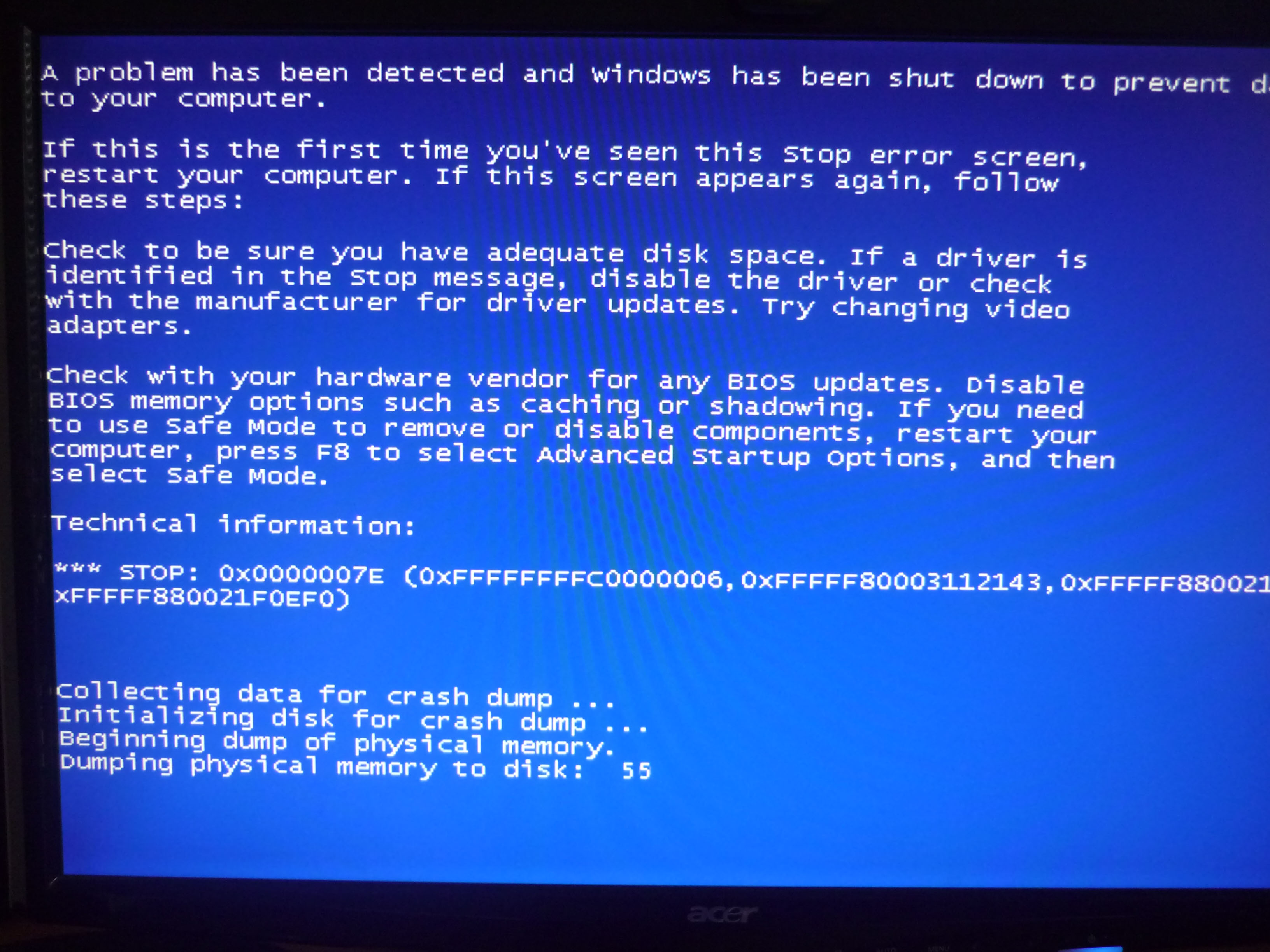 Z jakéhosi důvodu začal počítač (OS Win 7 x64 HP) při zapnutí vyhazovat modrou smrt s kódem 0x0000007E (celé znění je ve screenu..).