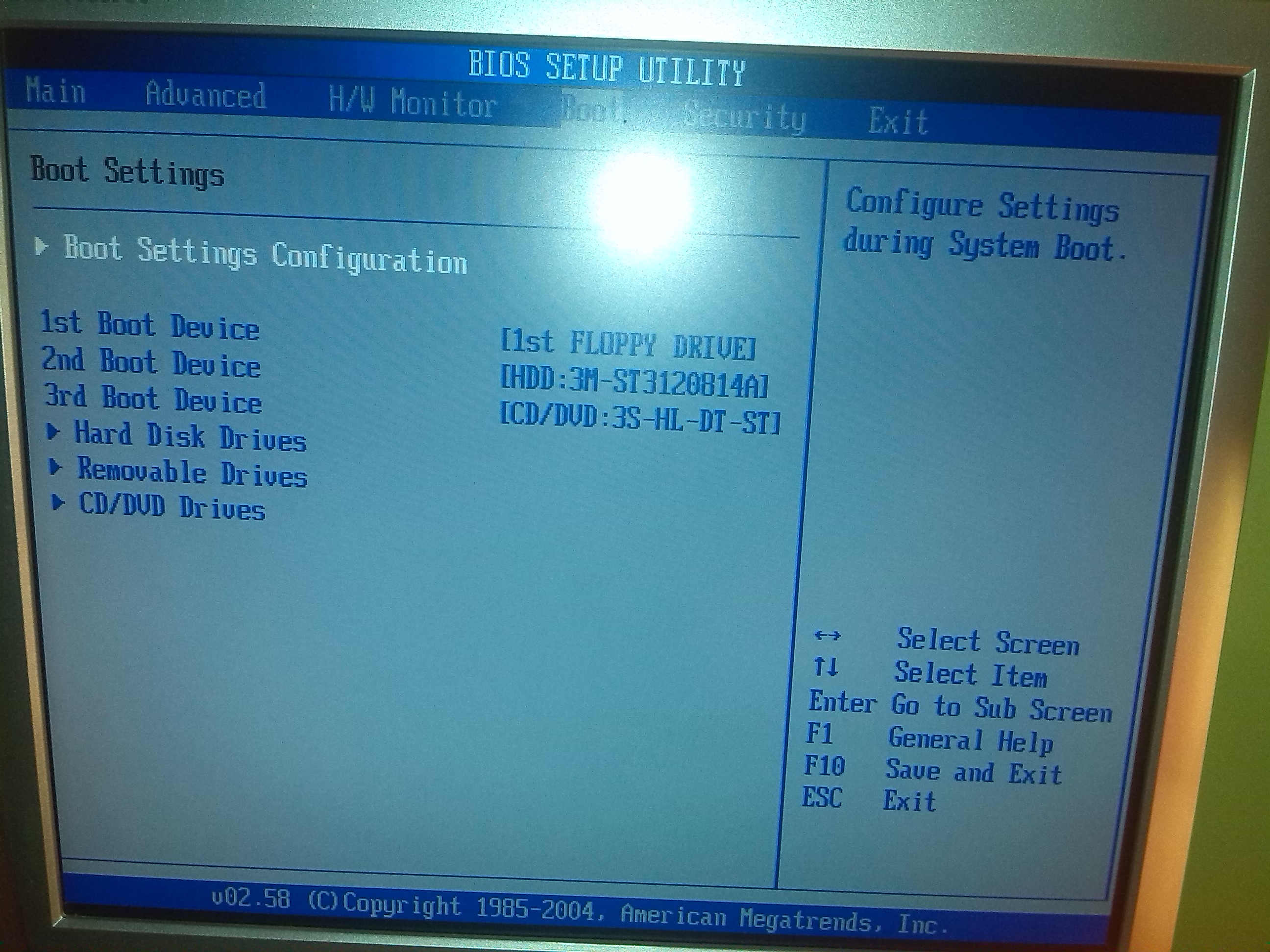 No, máš tam na prvním místě floppy. To je disketovka. Musíš tam mít CD/DVD...