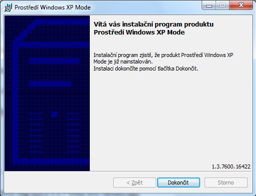 Re: Prostředí Windows XP Mode - prostředí již bylo nainstalo