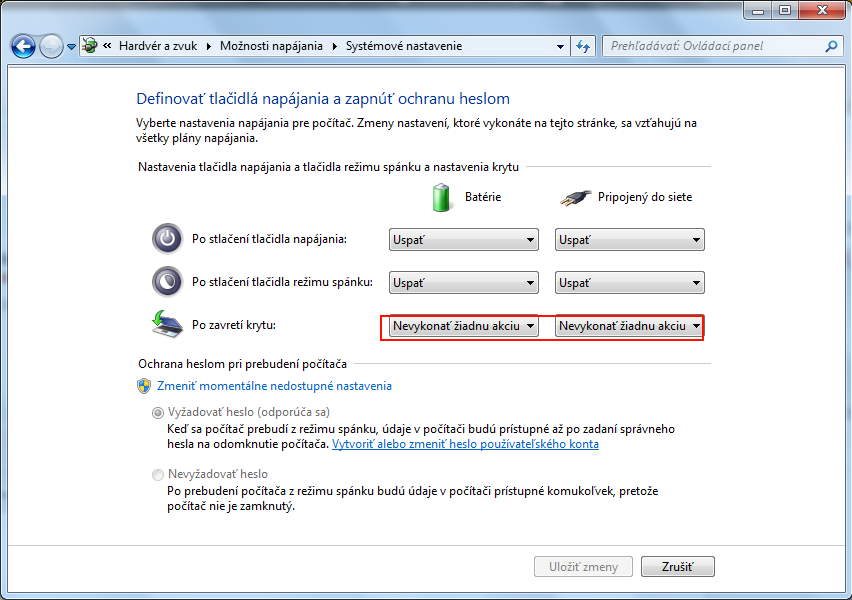 Co mas nastaveno v moznostech napajeni ze se ma stat pri zaklopeni displeje?