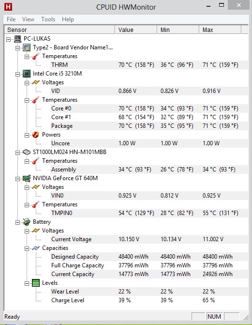 Tomu přehřívání bych se ani nedivil je to NTB a byl čištěný jen jednou před rokem a to byl čištěný jen tak aby se neřeklo pouze jsme z venku vyfoukali prachy z větráčku v servise nám totiž řekly že na tohle se záruka nevstahuje a že bychom za to museli zaplatit +- 1000 kc