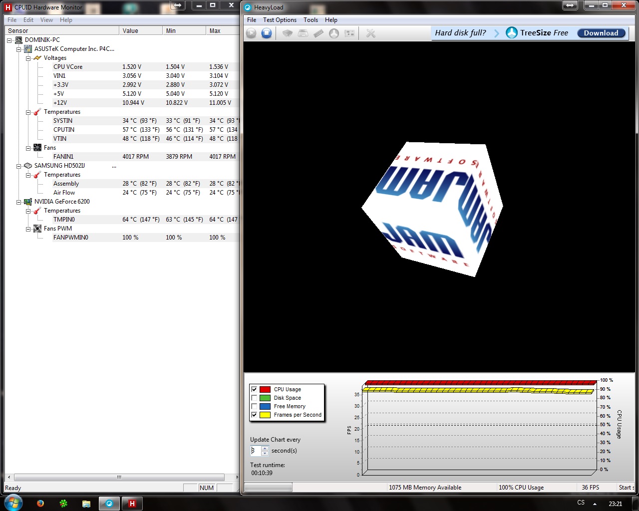 Teploty se zdají být v pohodě. Je pravda, že jsem test zapl hned po startu PC, takže GPU ani CPU neběželi moc dlouho. Teploty se nezměnily ani po 30 minutách co test běžel. Max. teploty u GPU byla 74 a u CPU byla max. 60.