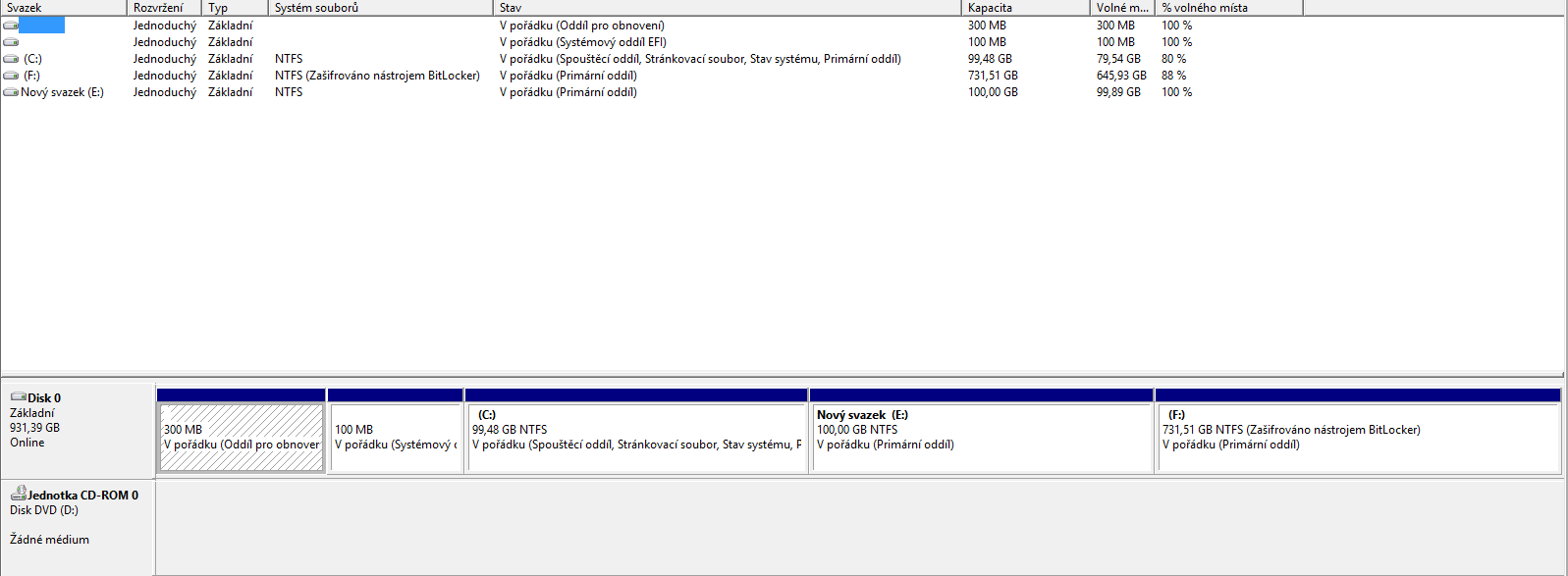 Disk C má velikost 100GB a je na něm 20GB dat (včetně systému)