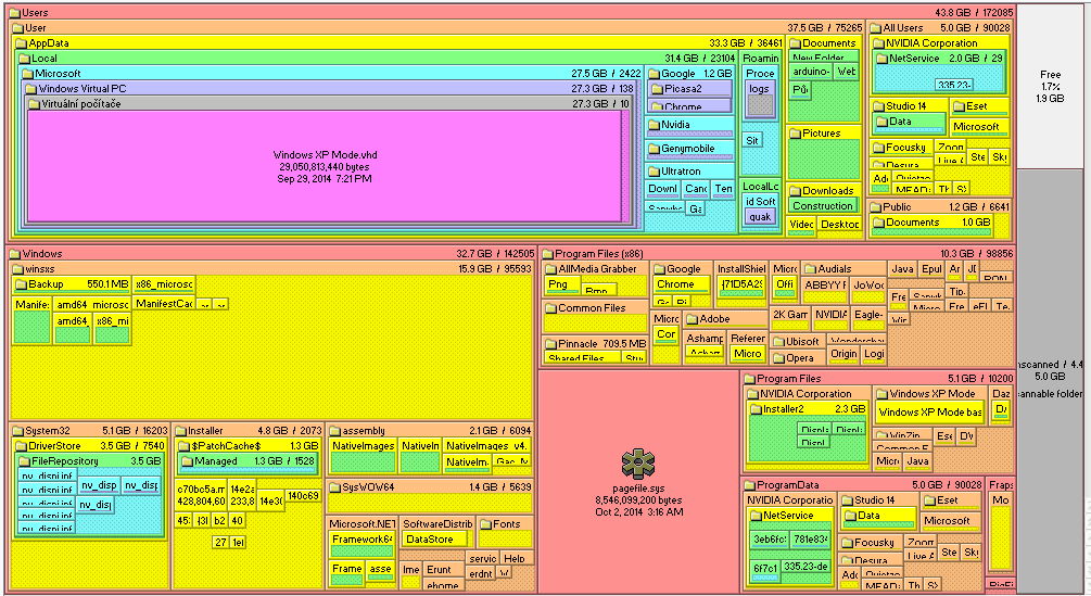 Místa jsem tam měl zpočátku dost, ale ač instaluju vše co jde ( nebo alespoň přelinkuju) na druhý disk, tak C se neustále plní a plní.