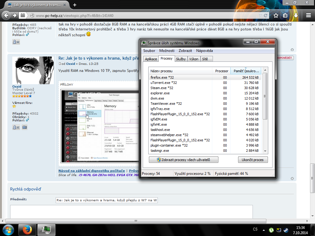 Já stále nemohu přijít na tvojí myšlenku mít 8 a ne 4 GB RAM... Mívam zaplé CS:GO a Dotu 2 a do toho zaplý Open broadcaster a ještě k tomu mam omezenou int. grafiku na 512mb. Takže mam jen 3,5 GB a stačí mi to uplně bohatě...