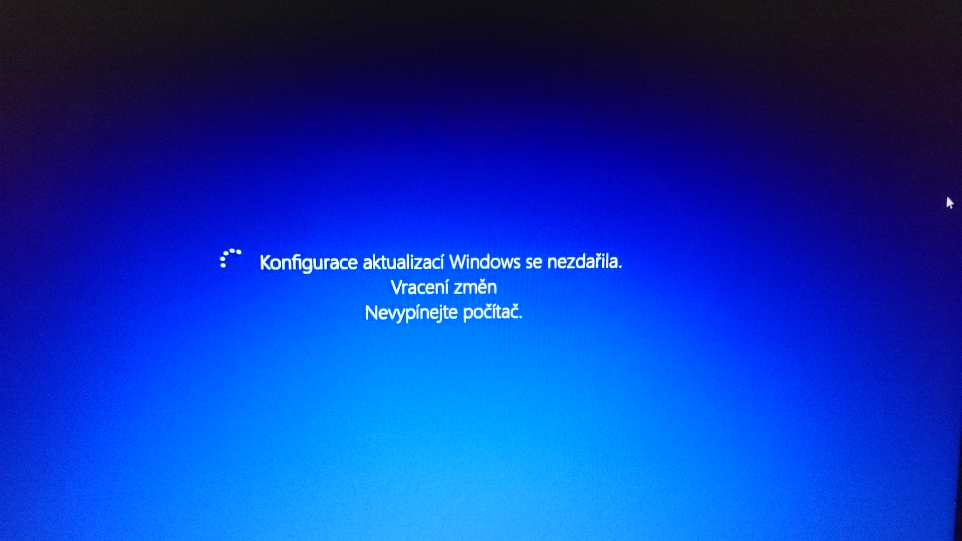 Konfigurace aktualizací se nezdařila