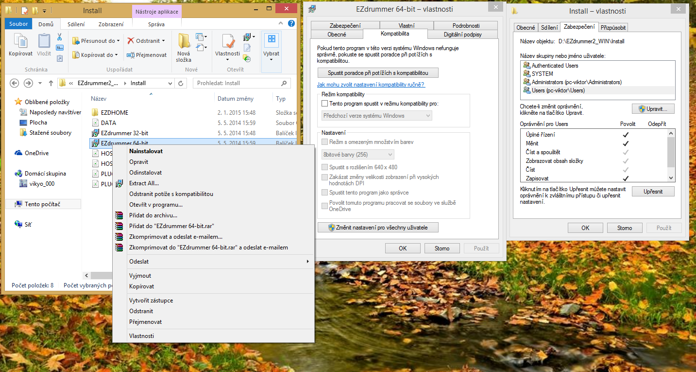 Kontextové menu mi tuhle volbu přímo neumožní a ani ve vlastnostech to nejde zaškrtnout. Udělil jsem úplné řízení pro složku, kde se instalátor nachází. 32-bit dělá to samé.