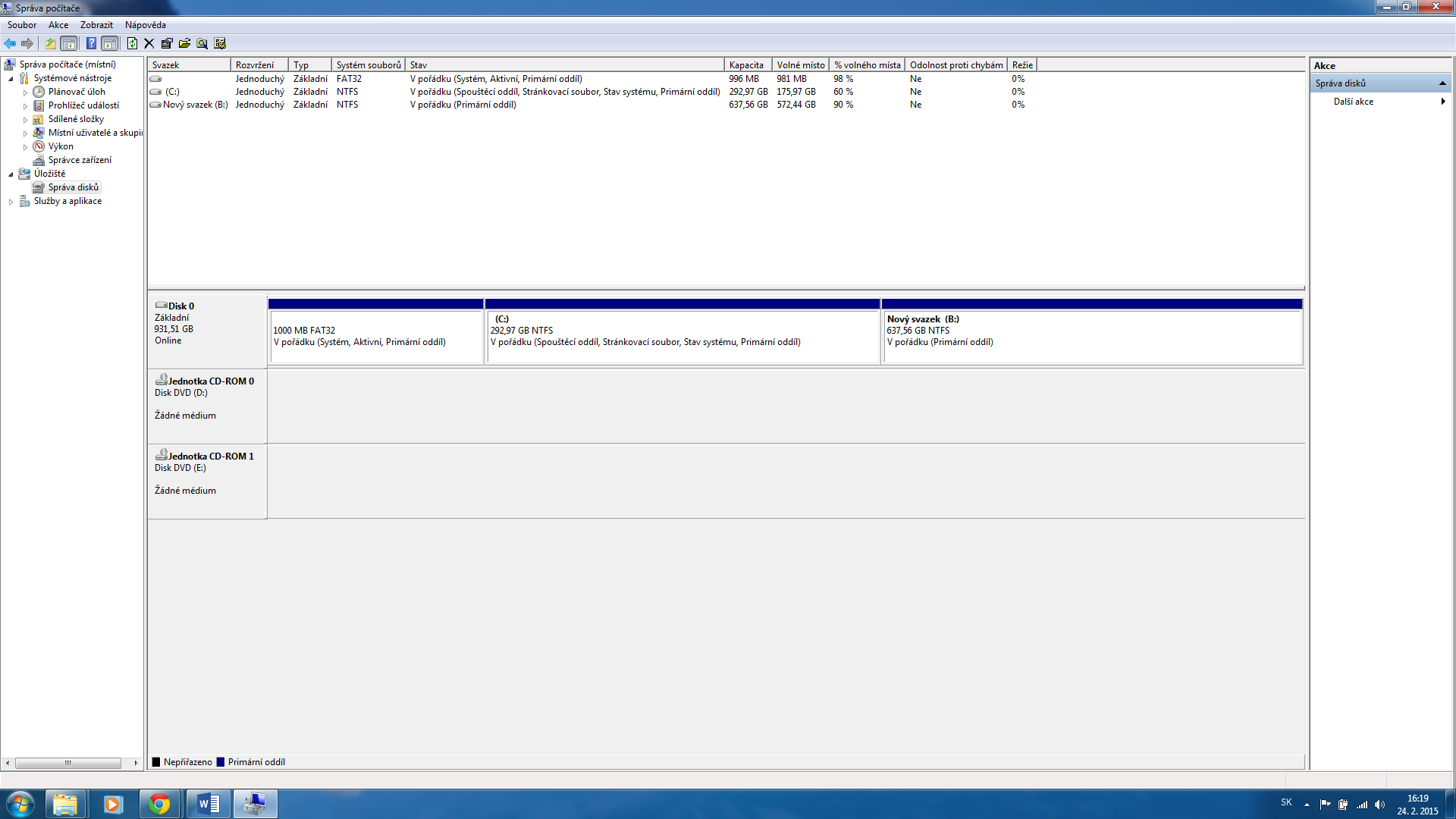 Kdy to začalo dělat. Dej sem do přílohy screen ze Správy disků Tento počítač - Spravovat - Správa disků. Jak se dáš screen najdeš pod záložkou Jsem tu poprvé.