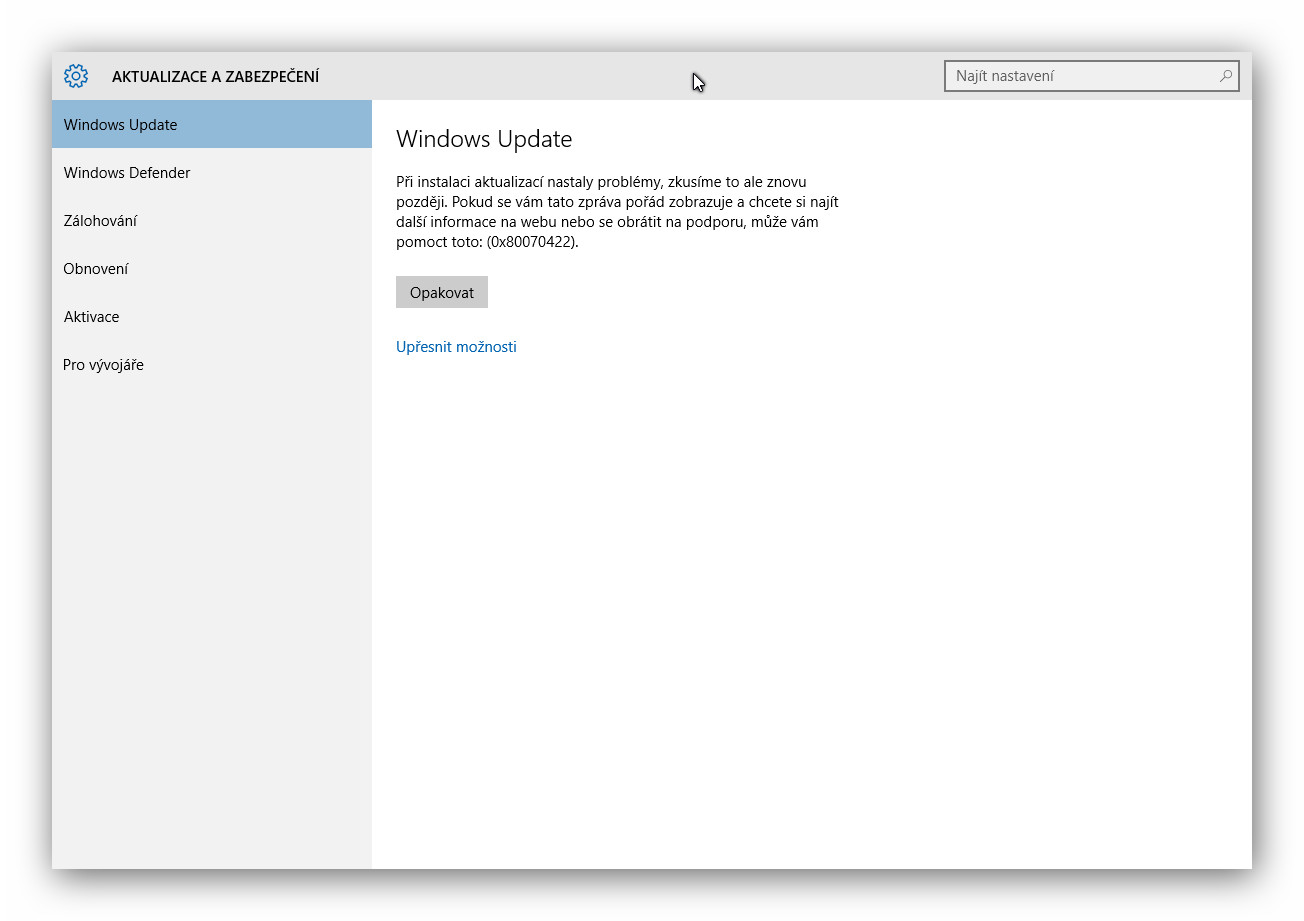 když chci aktualizovat w10 objeví se mi chyba - viz příloha. Na jiných fórech co jsem našel mám dát start - hledat a napsat services.msc.