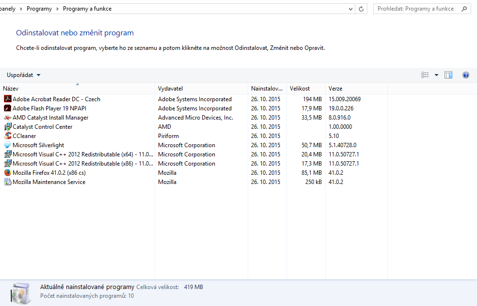 Děkuji za rady, byly užitečné. Provedl jsem tedy obnovu továrního nastavení (usnul jsem u toho) :D Disk se smazal celý a provedl se reinstal. Poté jsem nainstaloval dostupné aktualizace OS a ovladače na grafickou kartu. Jen teď nevím co dál, jak optimalizovat PC po SW stránce (jaký ovladče ještě stáhnout....) Docela mě zarazil počet nainstalovaných programů v ovládacích panelech-přidat/odebrat program, nechybí tam něco? Vím, že tam bylo nainstalovaných hodně věcí od Microsoftu a teď téměř nic.