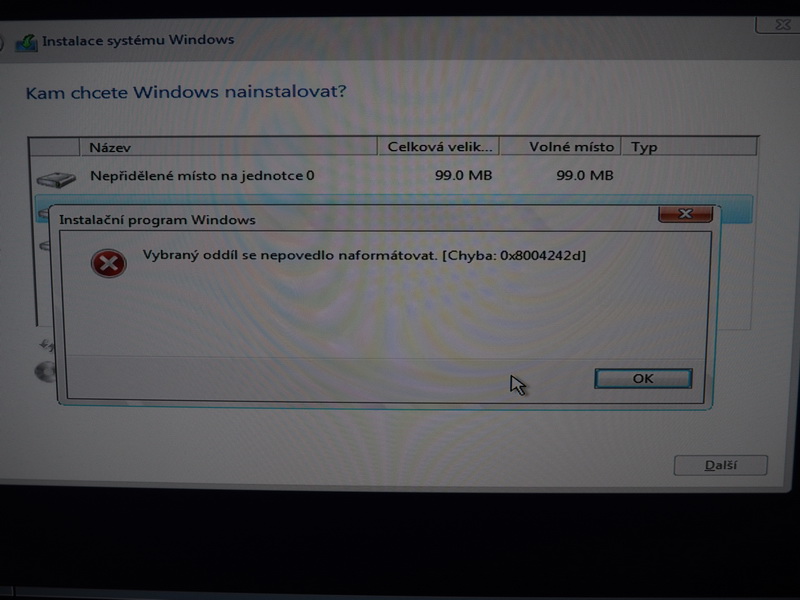 koupil jsem si plnou verzi Windows 10 Home. Dal jsem flashku do PC a v Biosu ji nastavil jako první. Pak se spustil instalační program. Zadal jsem kód. Když chci zformátovat SSD, objeví se chyba, že disk se nepovedlo naformátovat (viz. obrázek). Přitom to ukazuje, že disk je prázdný, tudíž předchozí systém a ostatní data se vymazaly. Tlačítko Další je zašedlé, takže v instalaci nemohu pokračovat. Zkoušel jsem to dvakrát.