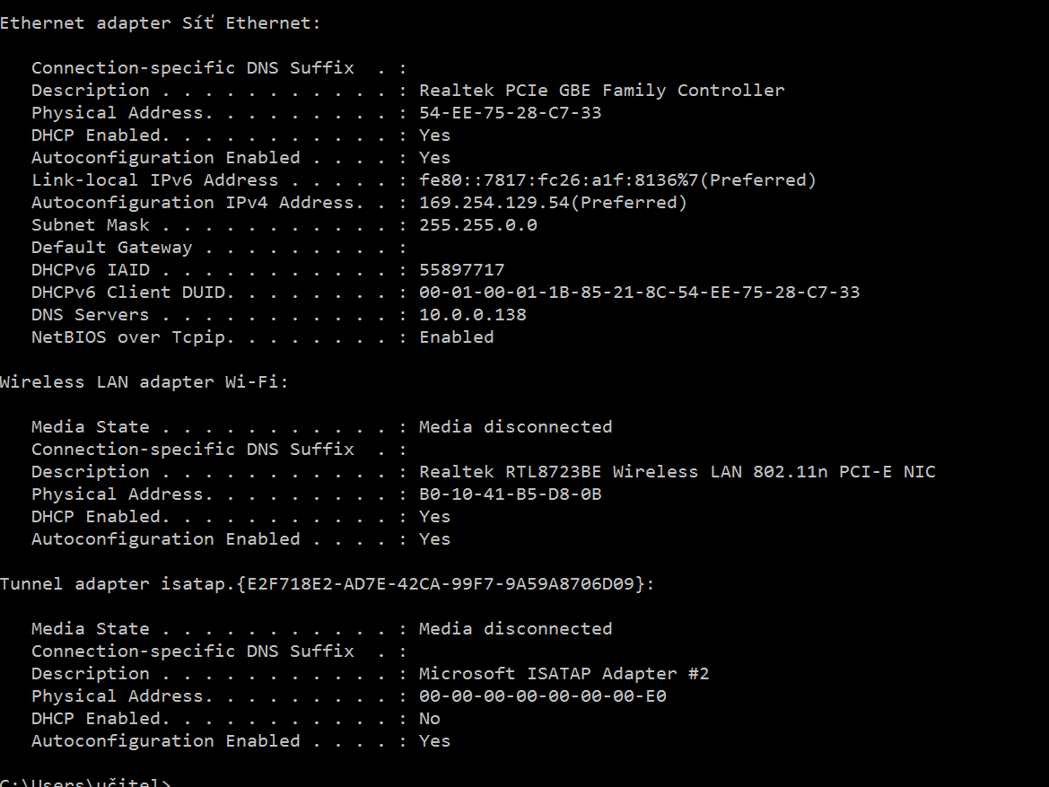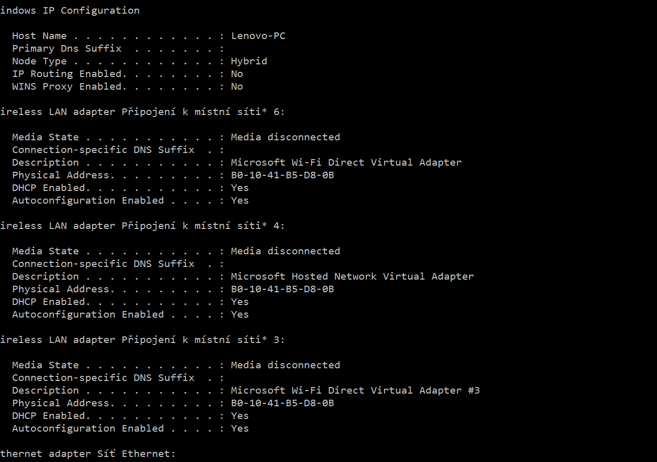 zkus sem zkopírovat to, co ti vypíše ipconfig /all