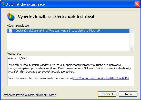 Když dám instalovat, hodí to chybovou hlášku "Některé aktualizace nelze naistalovat. Instalační služba systému Windows, verze 3.1, společnost Microsoft"