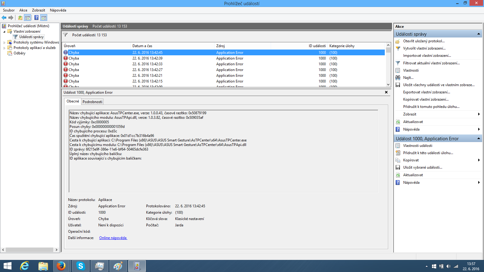 Cesta k chybující aplikaci: C:Program Files (x86)ASUSASUS Smart GestureAsTPCenterx64AsusTPCenter.exe