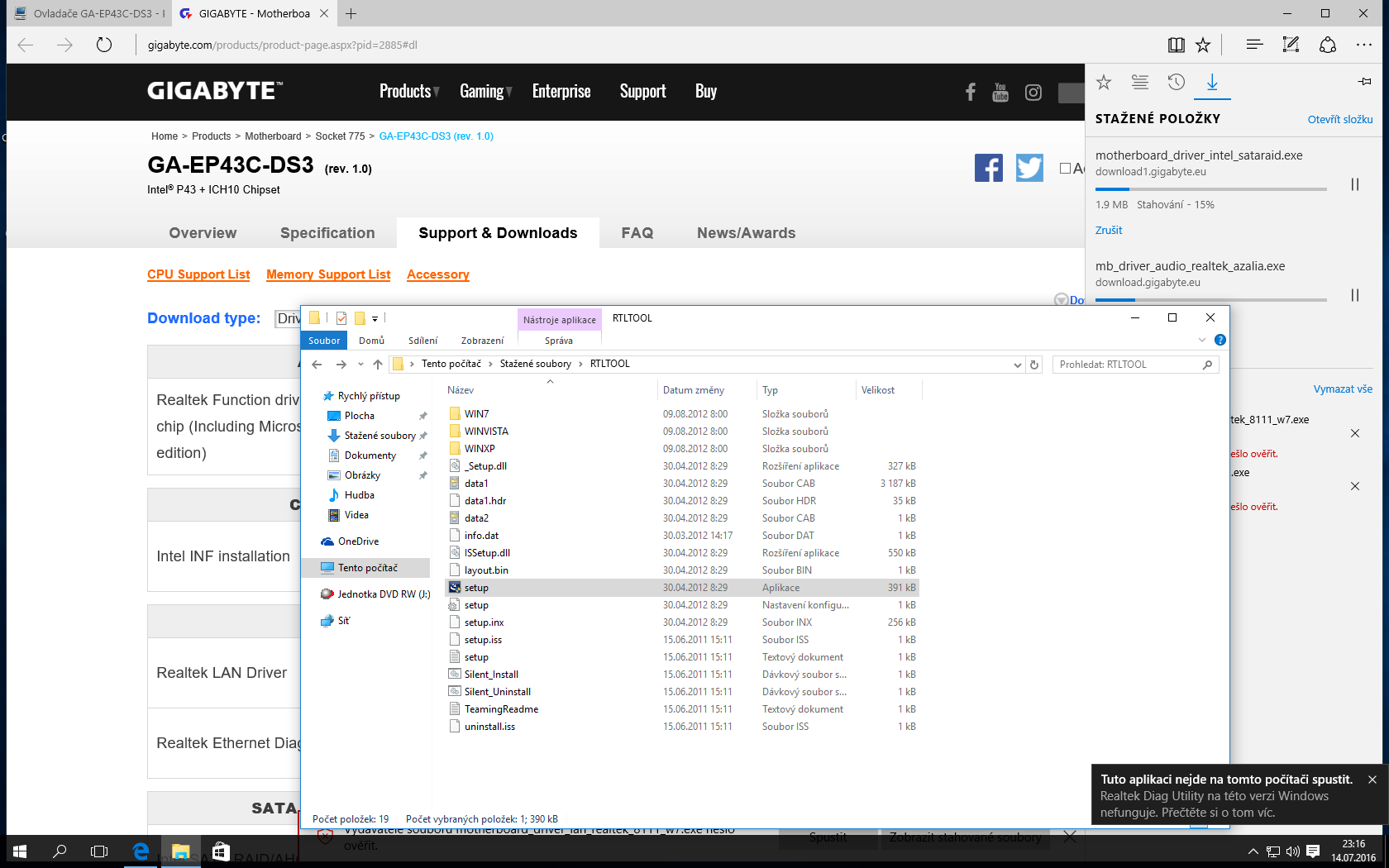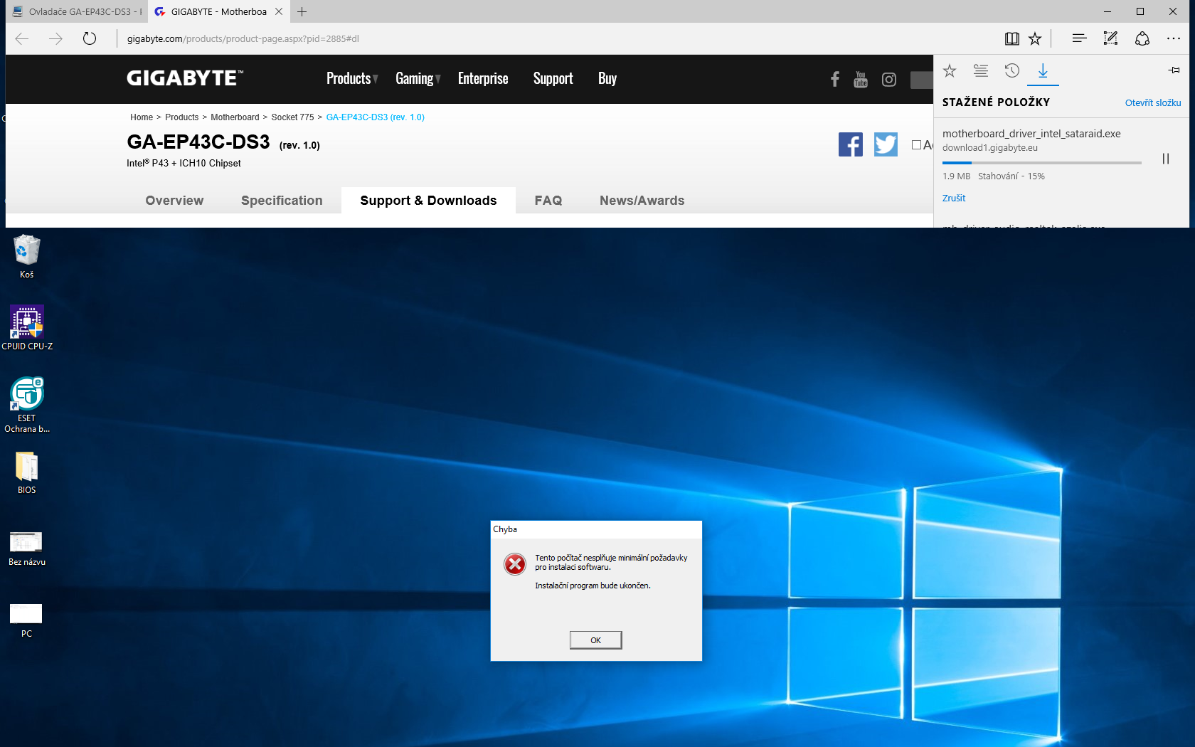 Zde nefunguje jedna věc z nabídky ovladačů přímo na stránce Gigabyte. Zde další program