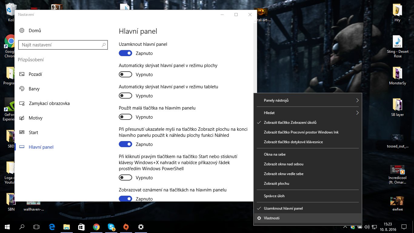 A také jsem si nemohla povšimnout jedné věci. Když kliknete pravým dolů na lištu už se vám nezobrazí ikonka s nastavením ! . Ale najedete přímo do nastavení Windows kde si můžete svou lištu přizpůsobit dle vašich představ.