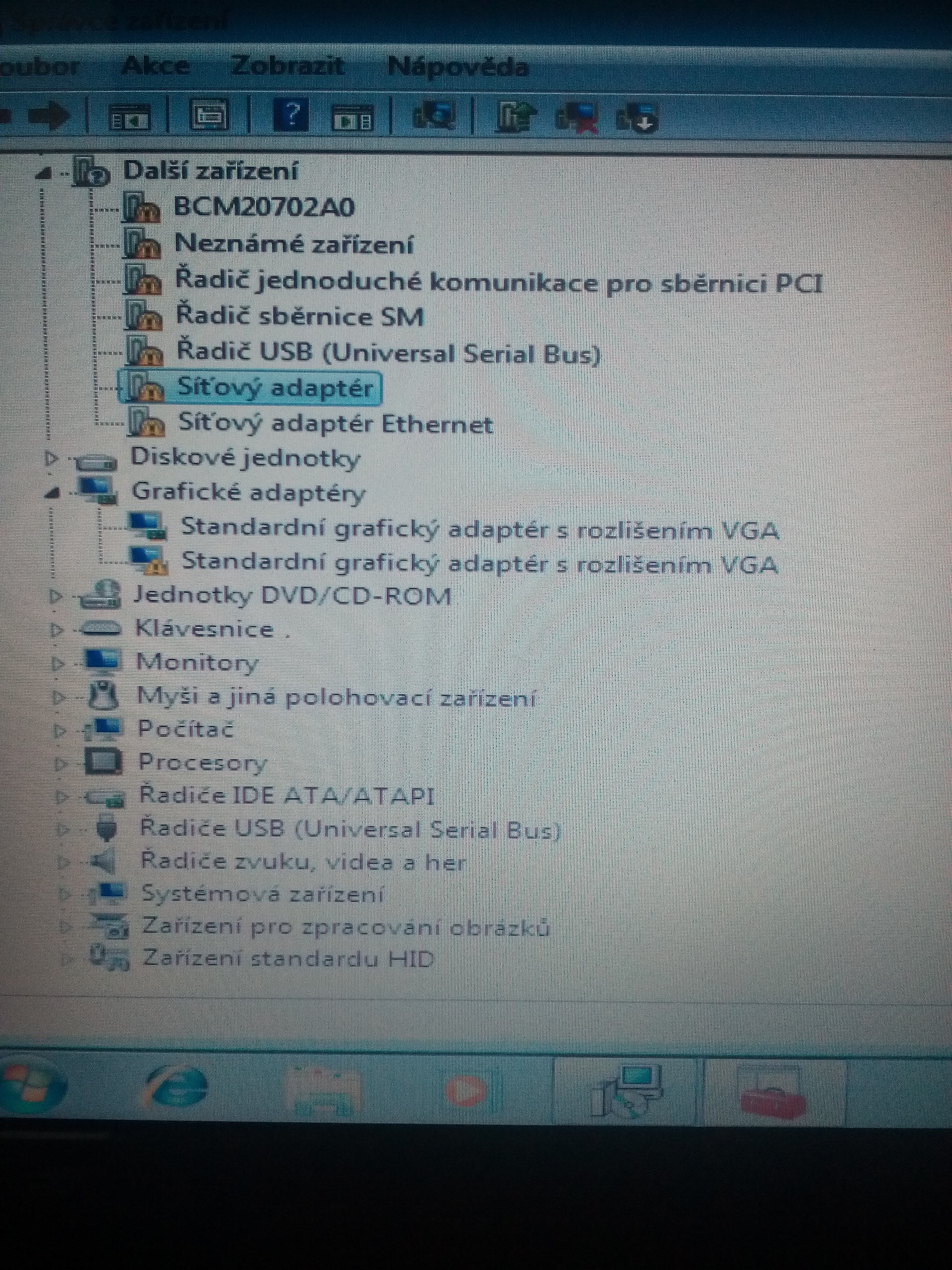 Je potreba doinstalovat ovladace rucne pro vsechna zarizeni, ktera maji zluty vykricnik - pokud pro Windows 7 existuji. Mely by byt ke stazeni na webu vyrobce notebooku.