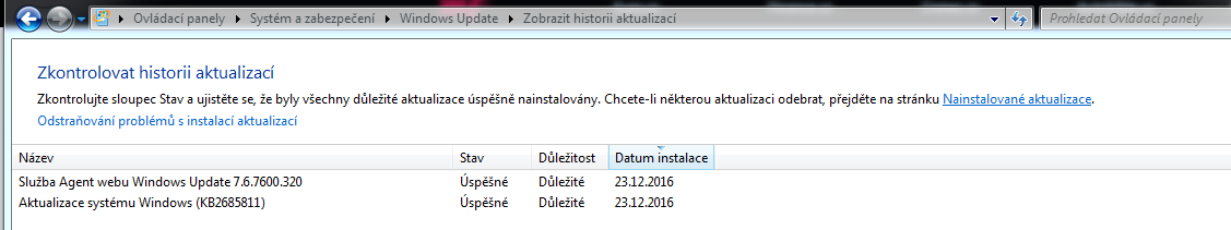 Po dalším restartu se mi po spuštění souboru s aktualizací ukázalo pouze toto..