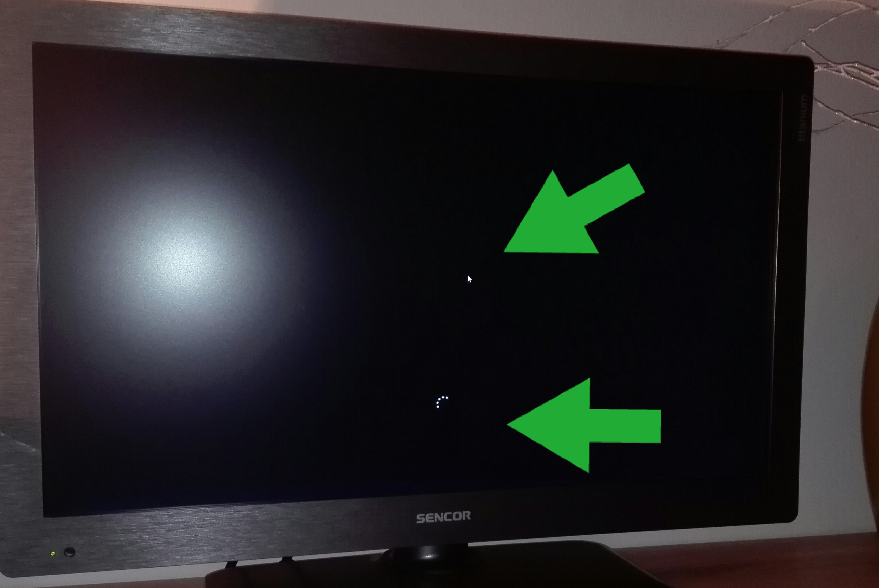 V průběhu instalace se však vyskytl obrovský problém. PC se sám od sebe restartoval a následně naběhlo pouze úvodní modré logo při spouštění Win 10, a poté černá obrazovka na které je vidět pouze kurzor myši a "načítací" kolečko... (viz foto)