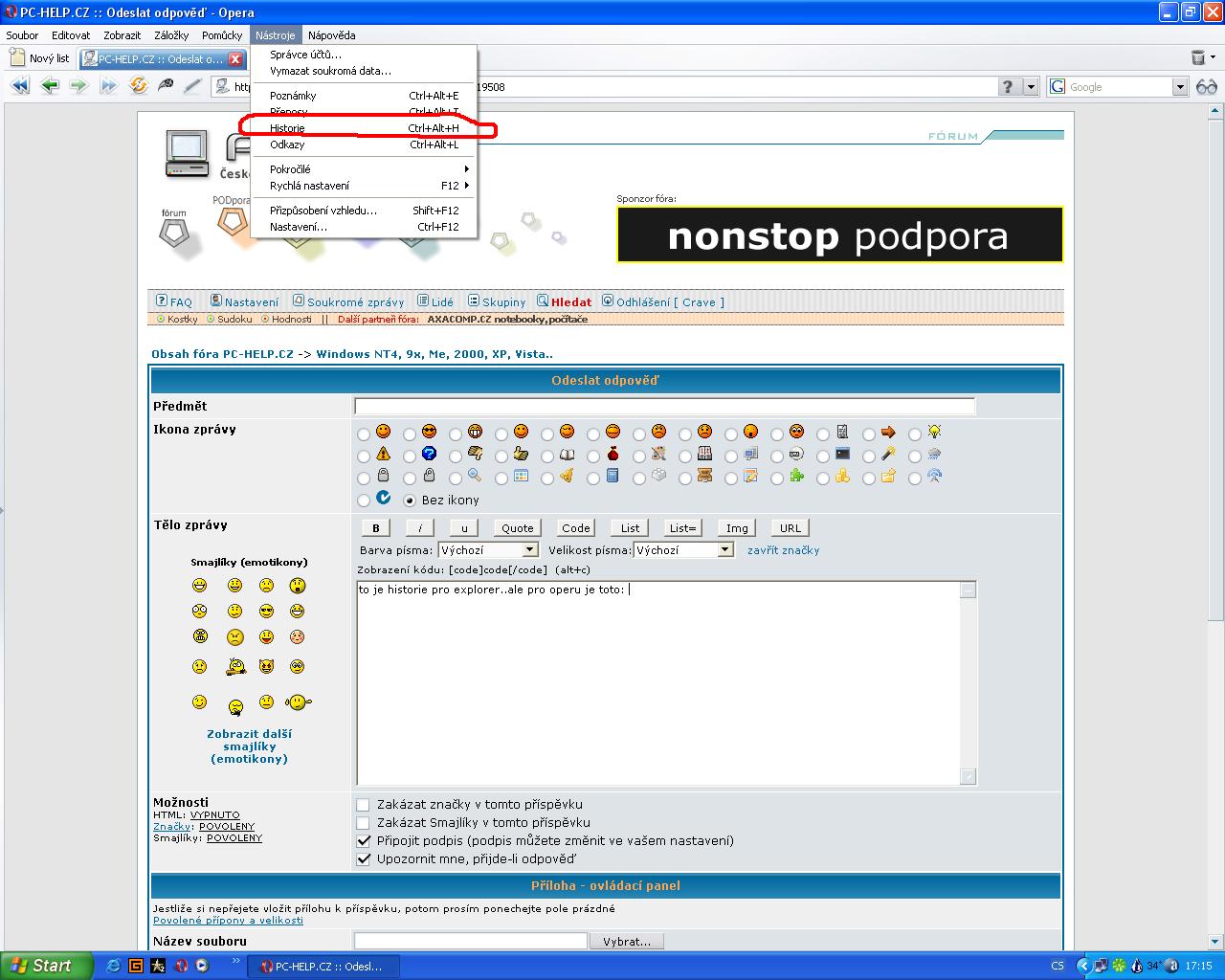 Nevím jak v Opeře, mám IE: Ovládací panely >