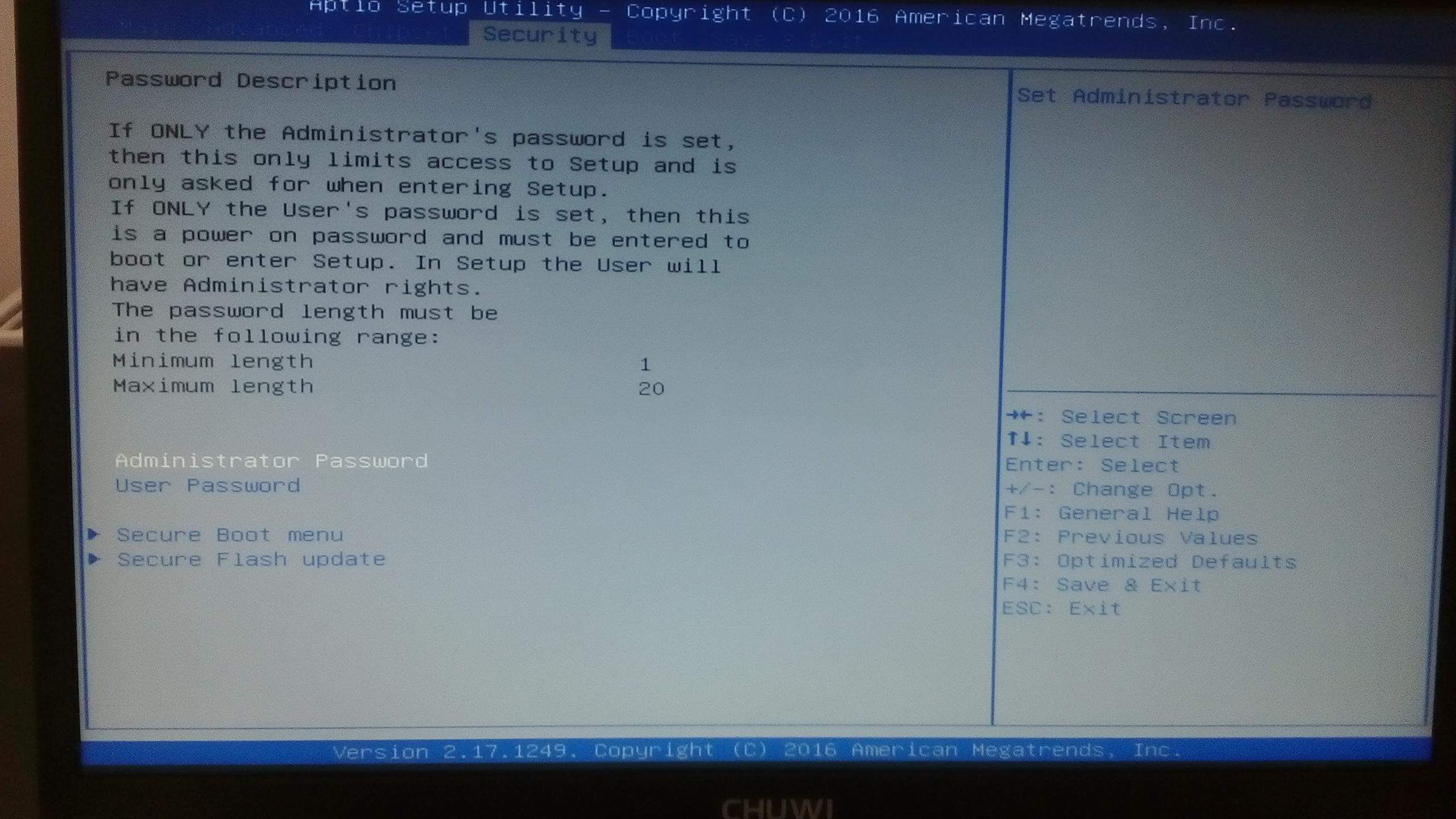 Pan CHUWI vyžaduje UEFI. Jinak do nej Win 7 nedostaneš. A to pouze 64 bit. Asi je to chraněný tim podpisem proti přeinstalování staršími Win.