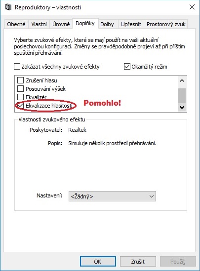 Ovladač Realtek je předpokládám správnej (vyzkoušel jsem 2 a je to stále stejné).