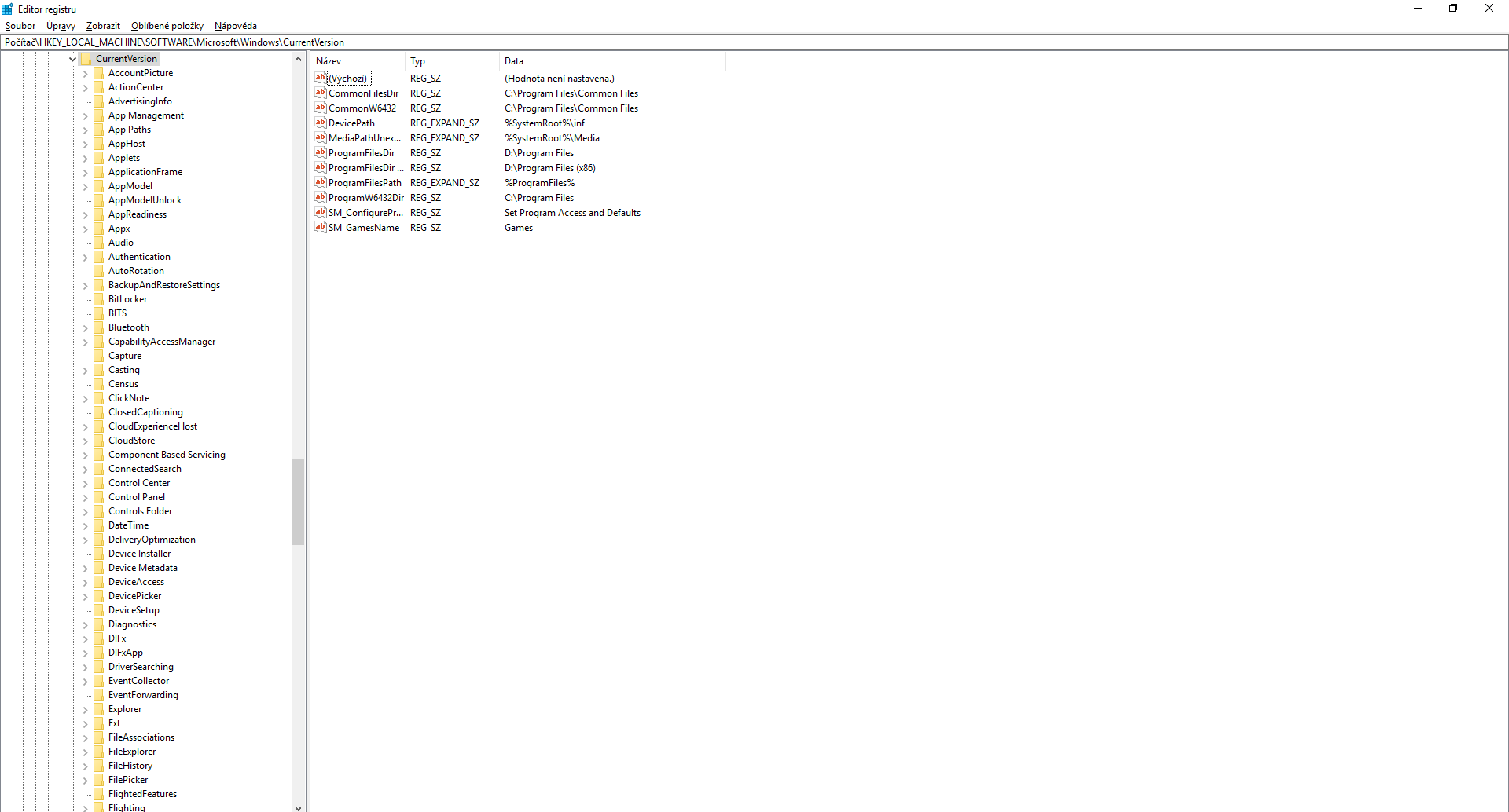 No, ale když to vrátím na původní, tak to také nepomáhá. Nic jiného než CurrentVersion jsem neměnil...