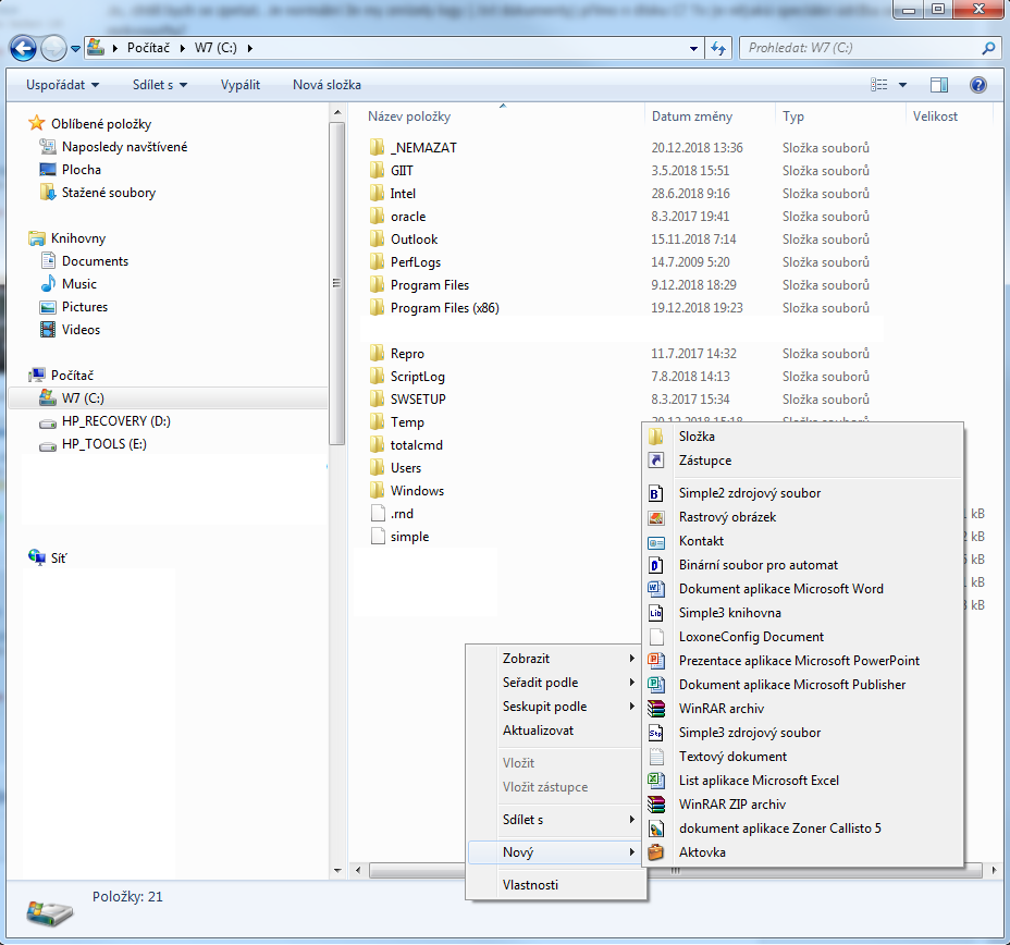 Tak to máš pri Win 8 aj 7.cunik.cz píše:a když zmáčknu PTM a dám nový tak mi tam vyjede že na disku C můžu vytvořit pouze složku, nikoli .txt či nějaký jinný soubor. Je to možné?