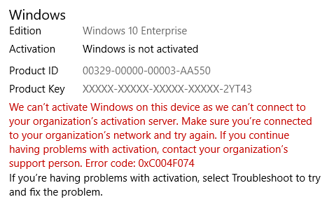 Jestli se nepletu tak asi cca 1-2 měsíce zpět se psalo o nějakém problému který právě převážně verze enterprise licence chybně deaktivoval mrkněte na google někde to tam určitě bude jak postupovat pro znovu aktivaci.
