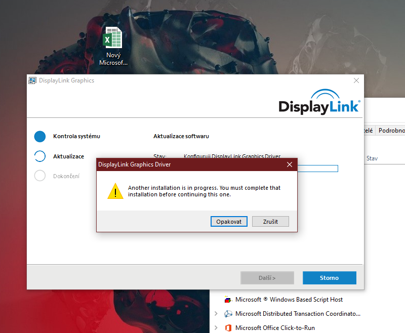 Ovladače včetně grafiky a atd. mám aktuální, řeším nyní další problém, že bych potřeboval všechny tyto ovladače dokovací stanice odinstalovat a nainstalovat znovu, ale píše mi, že v podstatě v pozadí běží další instalace a proto to nemůžu odinstalovat/nainstalovat.